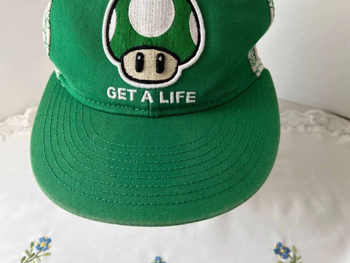 Get A Life Green Hat Cap One Up Mushroom Gamer Hat S M Super Mario 2011 Ages 14 Ebay